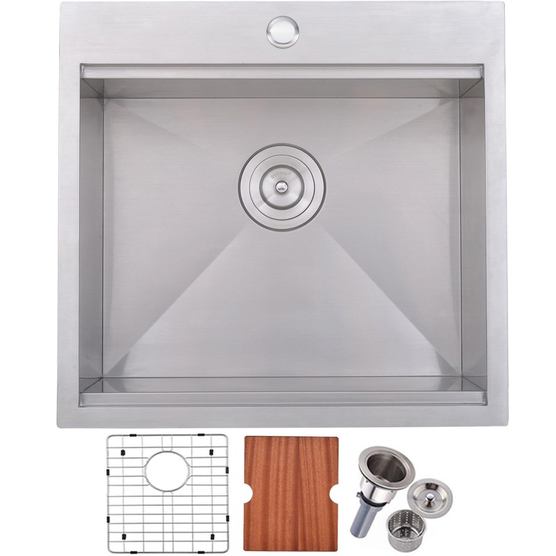 KINGO HOME Drop in Bar Sink,20 x 21 Inch Single Bowl Small Kitchen Sinks,304 Stainless Steel Topmount Wet Bar Prep Sink With Grid&Drainer&Cutting Board