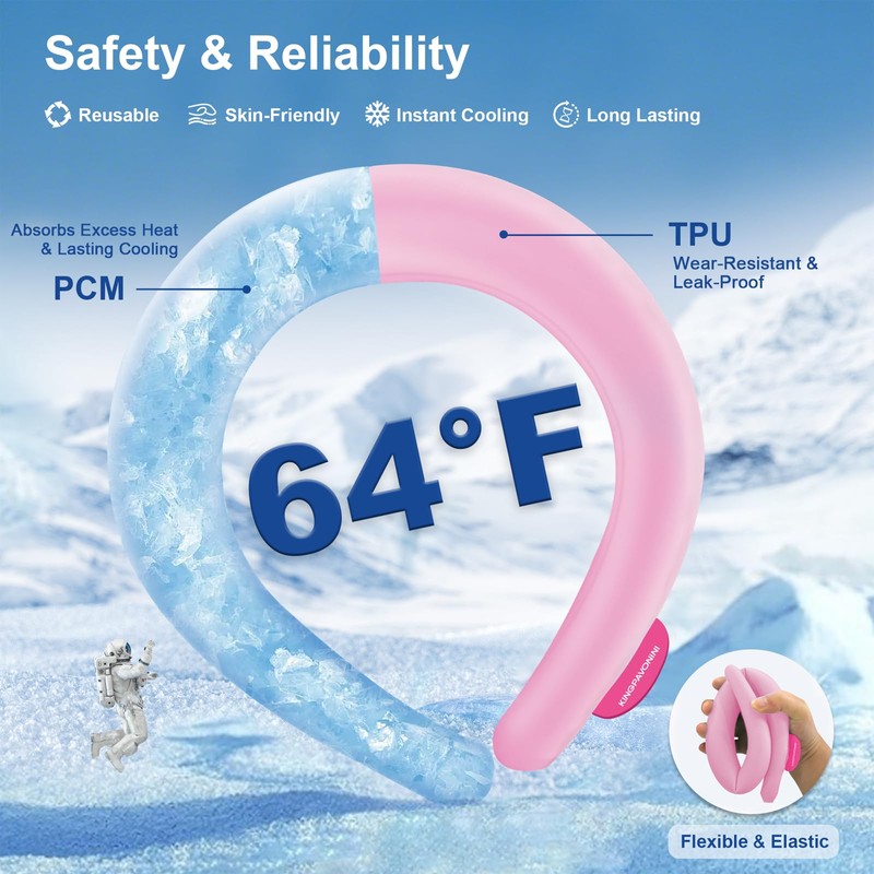 - [Safe & Reliable] The liquid-filled material (PCM) of the ice ring neck cooler has been qualified by SGS safety testing, absorbs heat quickly, with a faster and longer-lasting cooling effect than water. The outer layer is wrapped in thermoplastic polyurethane (TPU), which is smooth and skin-friendly, so there is no need to worry about frostbite on the skin. Stay cool & safe - outdoors, in the garden, or at home in the heat