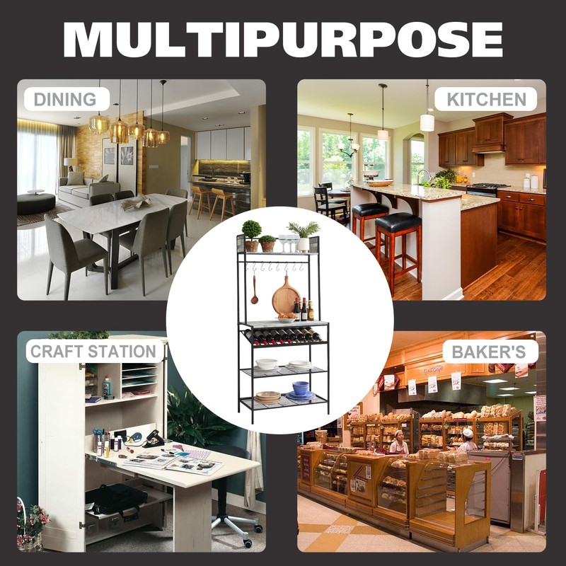 - CARE INSTRUCTIONS: Wipe the bakers rack with storage with a dry cloth to keep it clean and pleasing appearance over time. Upgrade your stand with a modern bakers rack that Is practical and has this stylish addition to your kitchen storage, as this can surely help you keep your space organized and clutter-free.