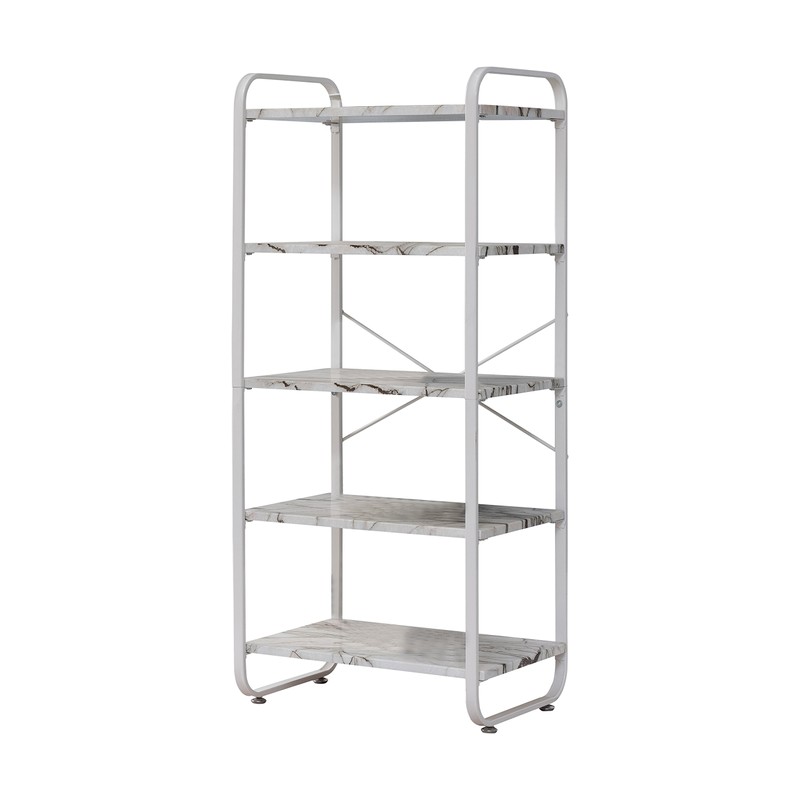 - Frame Finish: White. Frame Material: Metal. Shelves Finish: White Marble. Shelves Material: Wood