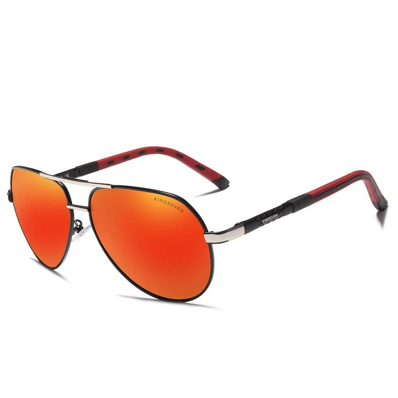 KINGSEVEN Classic Polarized Sunglasses for Men Women Retro Aluminum magnesium Sun glasses K725 (Silver Red)
