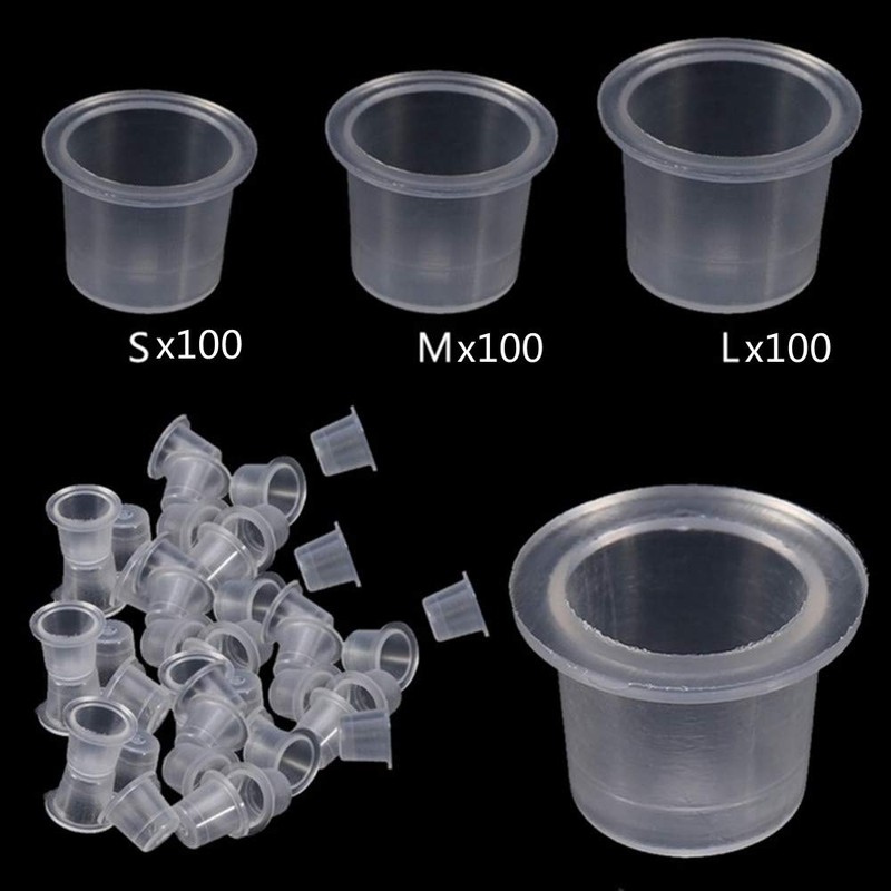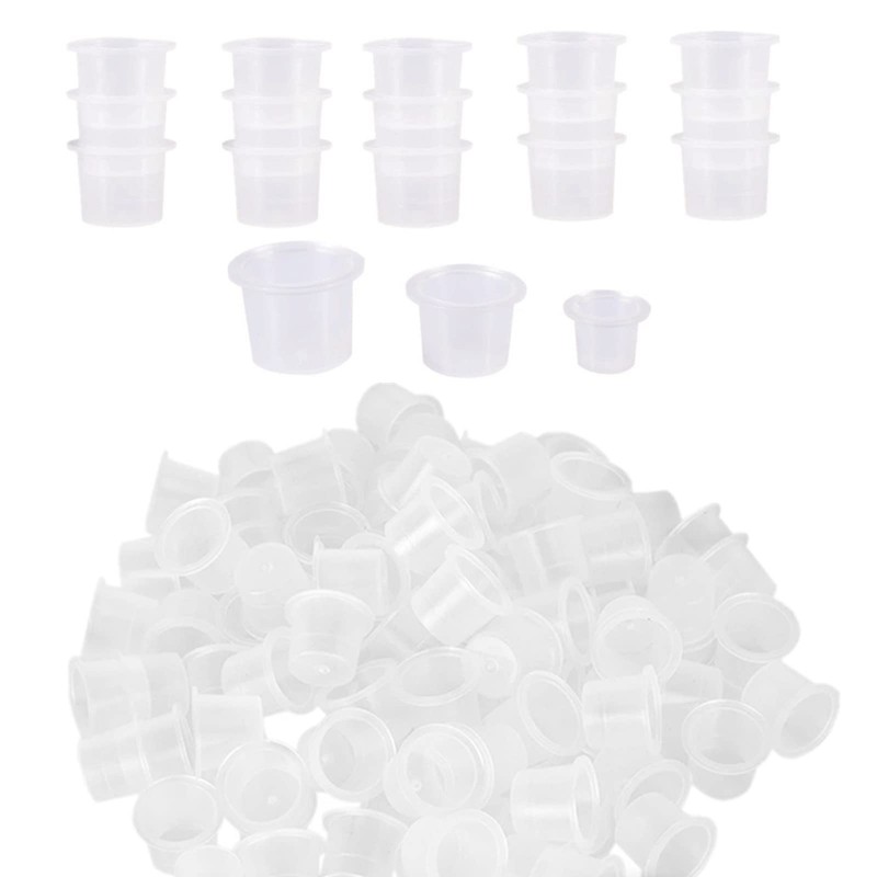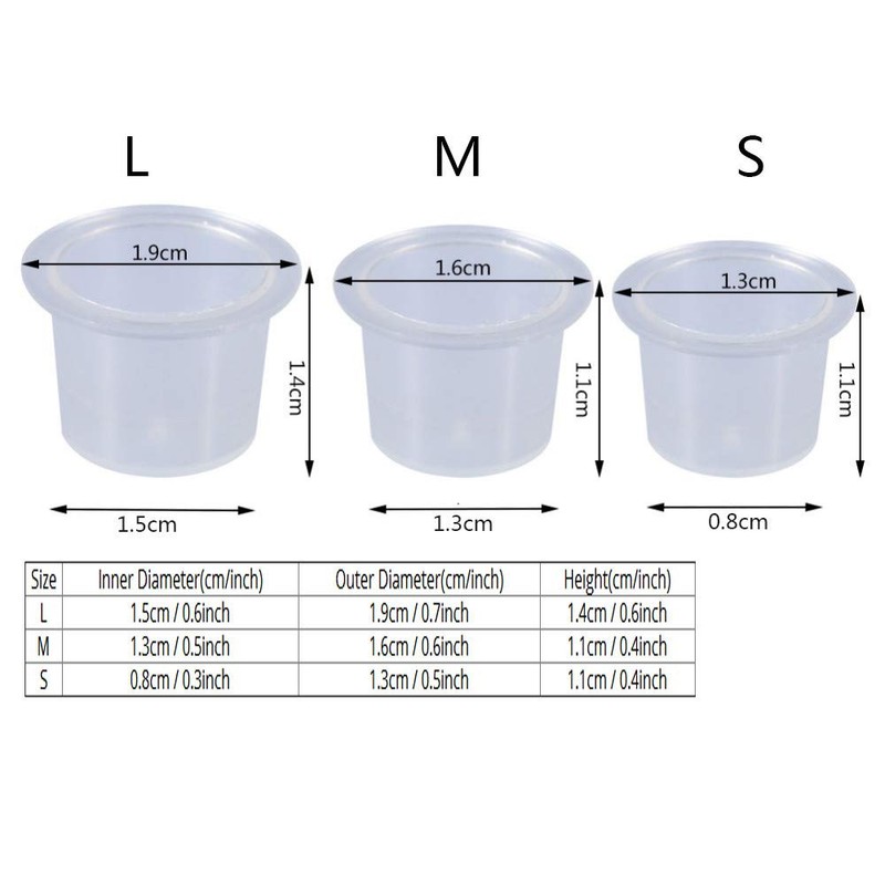 Kingsie インクキャップ 300個セット タトゥーインクカップ 使い捨て ホワイト 半透明 S/M/L