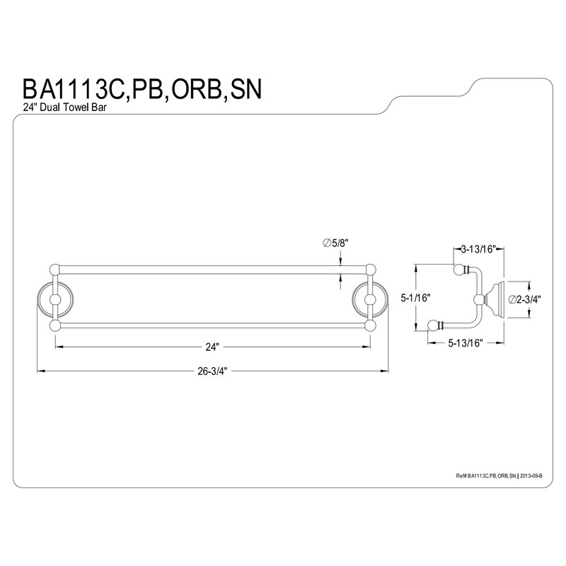 Kingston Brass BA1113C Victorian Dual Towel Bar, 24-Inch, Polished Chrome