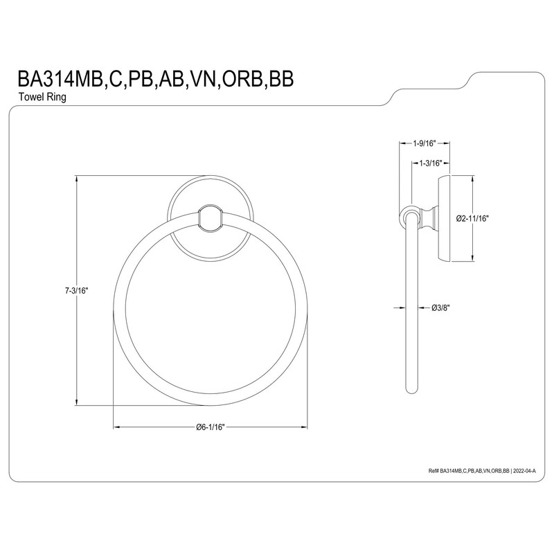 Kingston Brass BA314C Classic Towel-Ring, 6-Inch, Polished Chrome