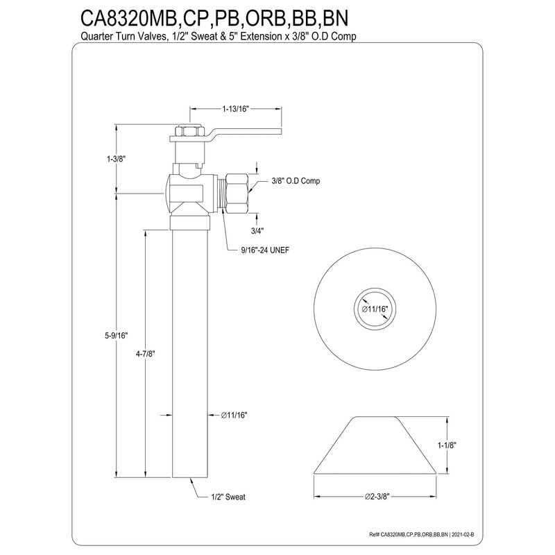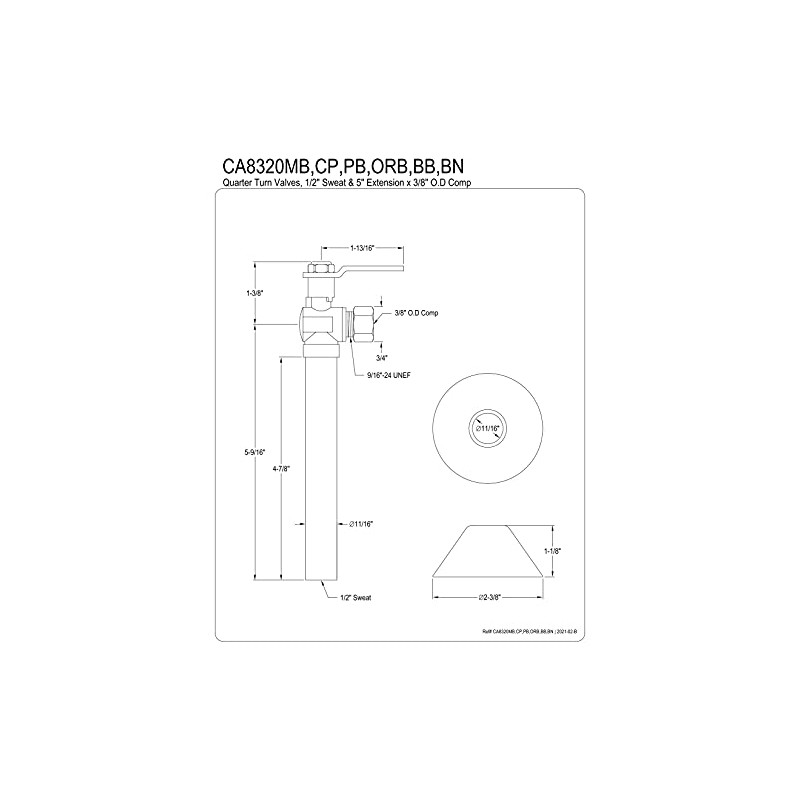 Kingston Brass CA8320PB Whitaker 1/2" Sweat x 3/8" O.D. Comp Angle Stop Valve...