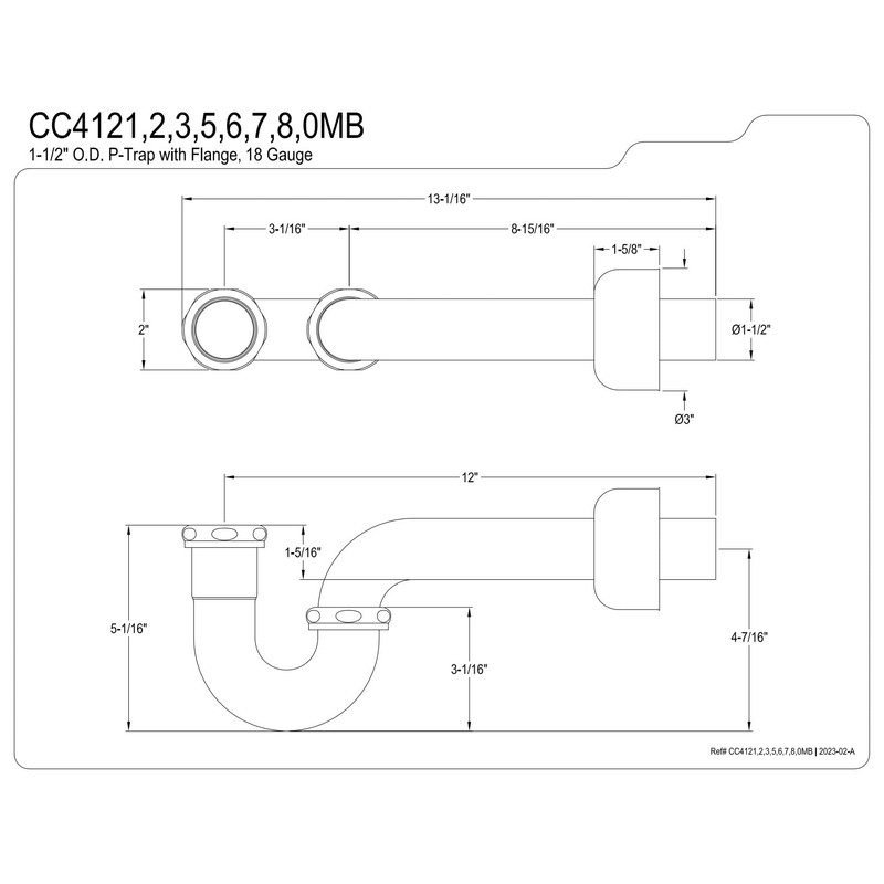 Kingston Brass CC4127 Trimscape 1-1/2 in. P-Trap with Box Flange, 13-1/16 in. Length, 18 Gauge, Brushed Brass