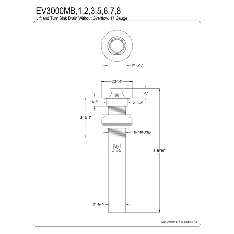 KINGSTON BRASS Elements of Design EV3001 Faucetier Lift and Turn Vessel Sink Drain, Chrome
