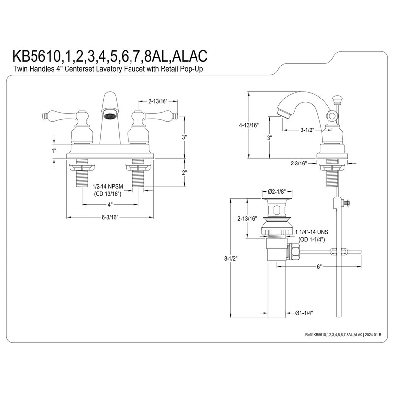 Kingston Brass KB5614AL Restoration 4 in. Centerset Bathroom Faucet, Chrome/Polished Brass, 3-1/2" spout reach