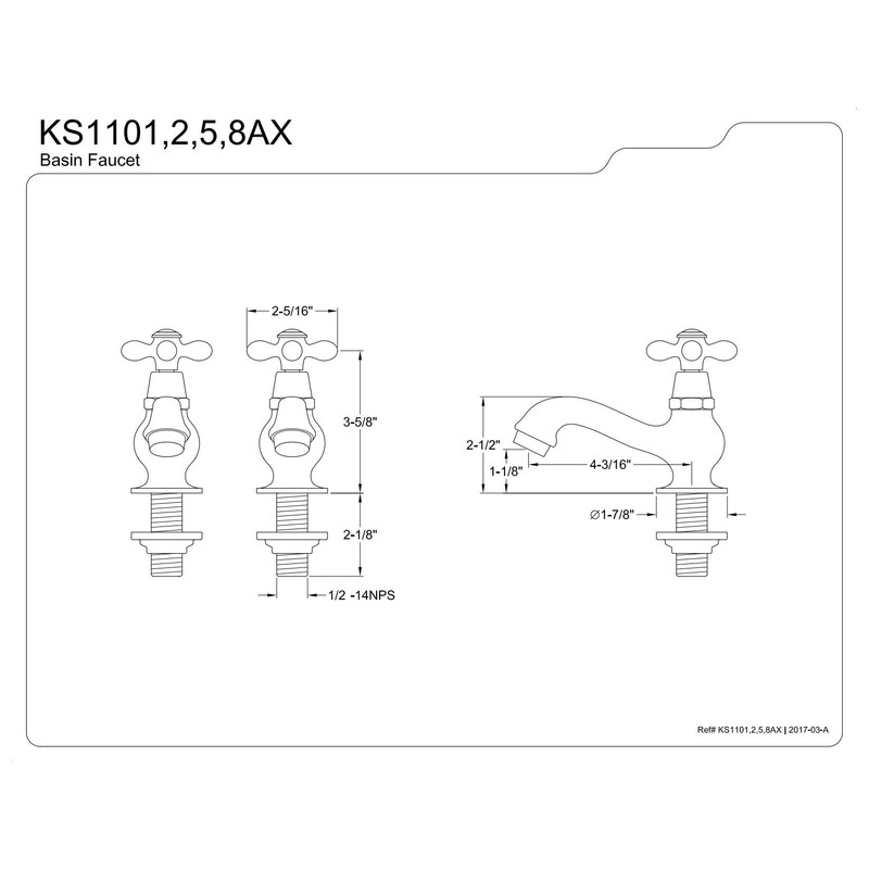 Kingston Brass KS1102AX Heritage Classic Basin Faucet Cross Handle, Polished Brass