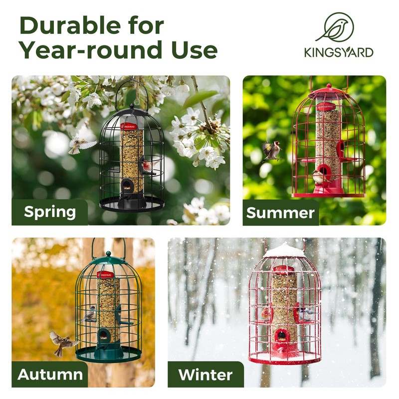 - Steady Durable:Constructed with premium materials, this feeder can hold up to 1.2lbs of birdseed and features four feeding ports, allowing multiple birds to feed side by side, ensuring durability for long-term outdoor use