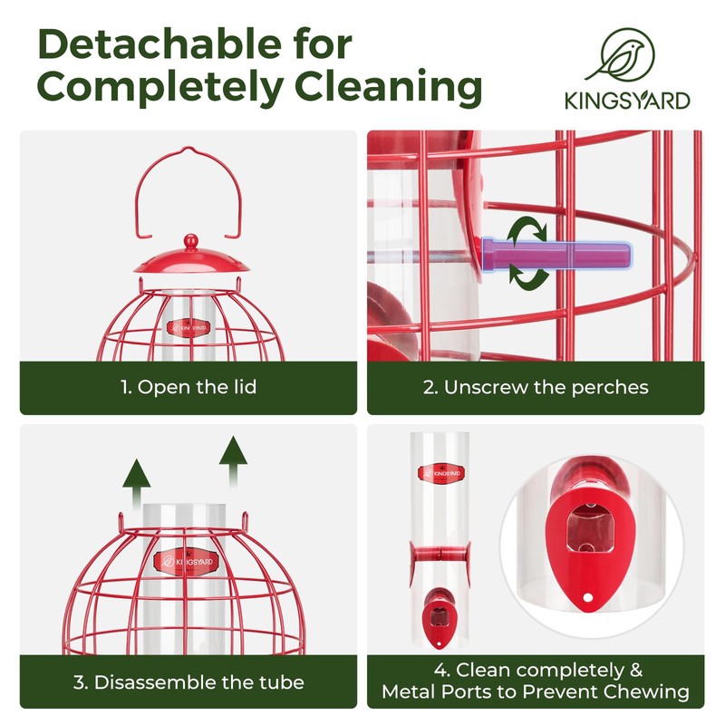 - Easy to Clean: The inner seed tube is designed to be detachable for easy cleaning, promoting a healthy and hygienic feeding environment for birds visiting your backyard or garden