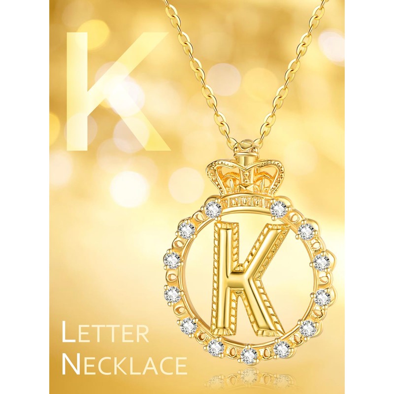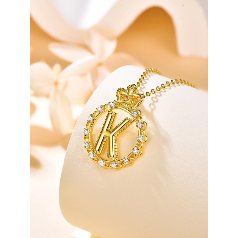 KINGWHYTE Letter Chain for Women Gold-Plated Initials Chain with Letter Crown Pendant Necklace Gold Jewellery Birthday Gift for Girls Women Girlfriend Valentine's Day, Sterling Silver