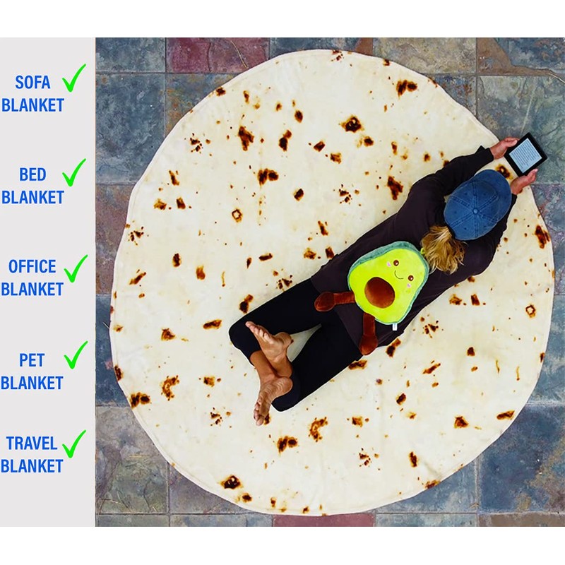 - 🎁🎁🎁 ULTIMATE GIFT BUNDLE – 2.0 DOUBLE SIDED THICK BURRITO TORTILLA 71 INCH GIANT BLANKET WITH CUTE STORAGE BAG AND AVOCADO PLUSH TOY: Giant Double Sided Burrito Pattern with Thick 285 GSM (Gram/ Square Meter) of Fuzzy Flannel Fabric, To Keep You Warm and Cozy All Year Long. Our Double-Side Burrito Design Is Super Soft and Comfy. Also Included : Complimentary Fun Blanket Storage Bag and Nice Size 16.5 Inch Avocado Plush Toy.