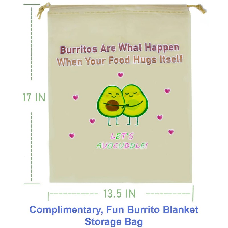 - ✅ PREMIUM QUALITY: Unlike Other Tortilla Blankets on The Market, Our 71-inch Burrito Swaddle Blanket Uses High Quality Flannel Fabric of 285 Grams Per Square Meter. This Non-Fading, Lint-Free, Ultra-Soft, Thick Furry Blanket is Specially Engineered to Form the Perfect Human Burrito. Yum! Yum! A Unique 16.5 Inch Nice Size Super Soft Avocado Plush Toy is Included for Extra Cuteness.