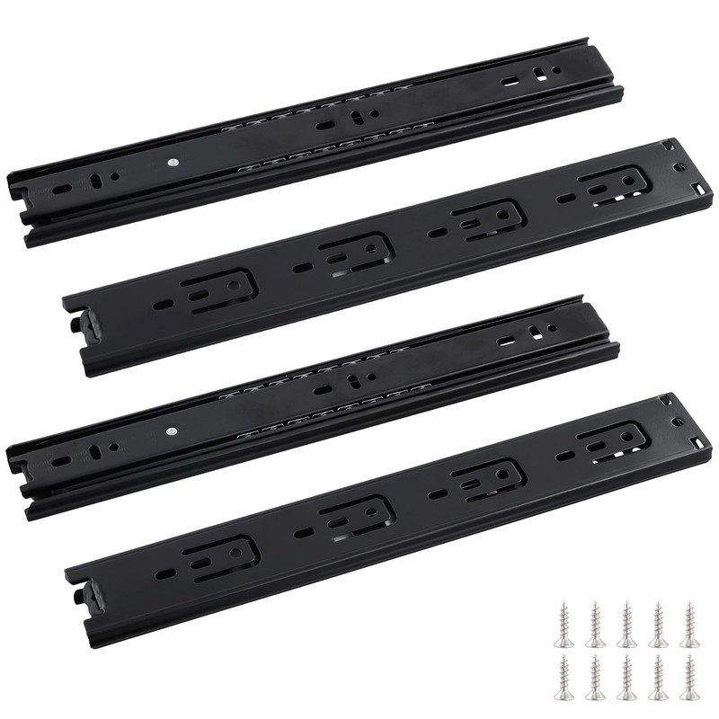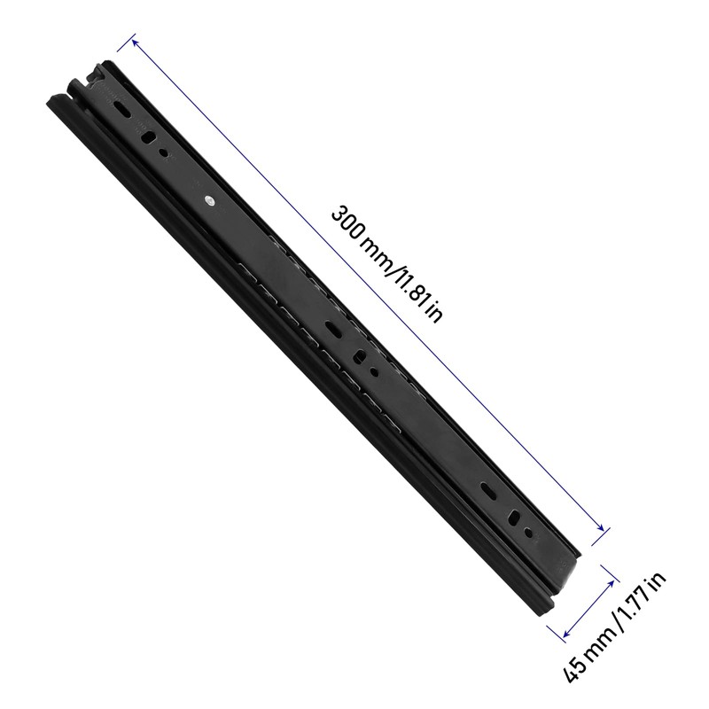 • MATERIAL - This 12" drawer slide is made of heavy duty cold rolled steel with black powder coat finish, which ensures high strength and weight loading capacity, as well as long lasting performance.