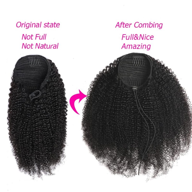 Kinky Curly Ponytail Extension Human Hair Ponytail Drawstring Ponytail Extension Wrap Drawstring Ponytail for Black Women Hairpiece Thick with Clip in Binding Pony Tail Natural Color