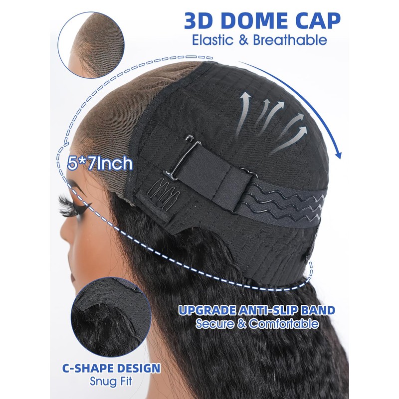 - 5X7 Large Lace & 3D Dome Cap: Features a 5X7 Large Lace Frontal and a 3D Dome Cap Design for a Seamless Fit, Providing Maximum Comfort and a Realistic Hairline