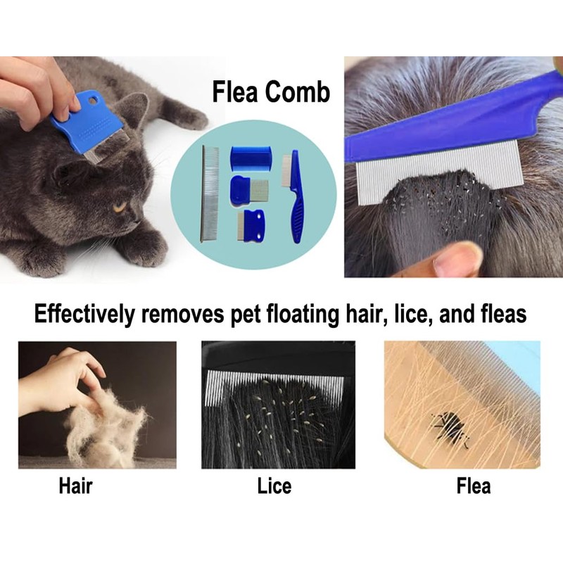 The kit also includes a nail clipper and file, two hanging straps, a pet hair comb, a set of 4 flea comb , and useful tips for grooming lively pets.