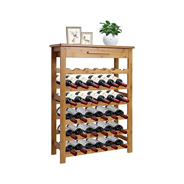 Kinlife Bamboo 6-Tiers Wine Rack with Drawer Free Standing Holder Storage Display Shelves for Storing 36 Bottles with Table Top