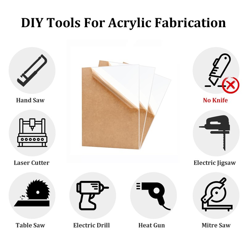 - EASY TO CUT -- Cut our acrylic panels quickly and easily with table saw, jigsaw, drill, router or band saw. Works with laser cutters and power tools can be no melting, burning or scorching during laser engraving. Easily drill holes with a drill bit, or cut with a miter saw, jigsaw, router, table saw or rotary tool for clean, polished edges.
