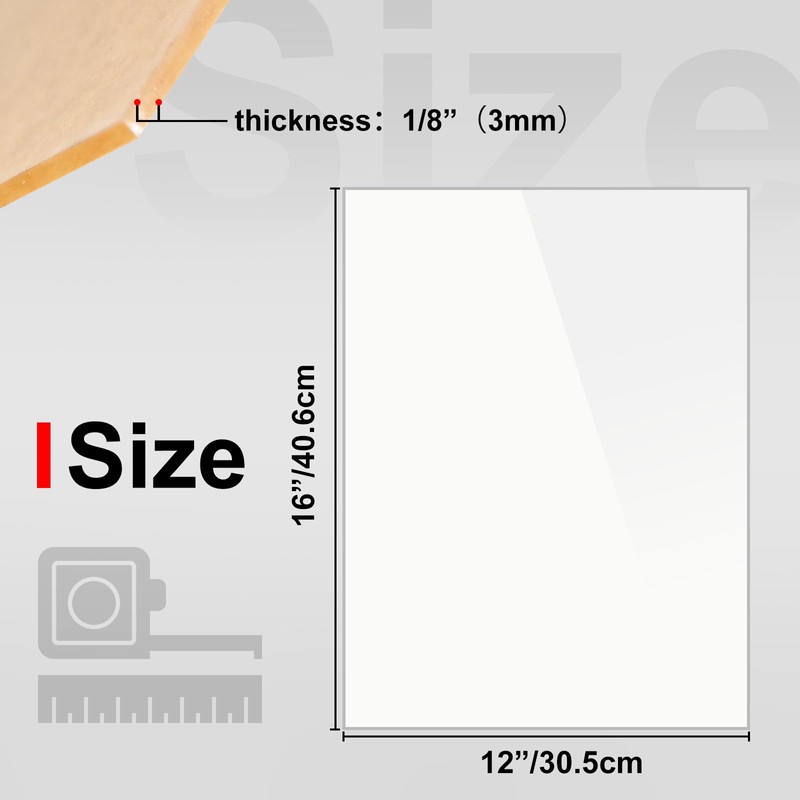 - SUPERIOR MATERIAL -- High quality acrylic material coupled with superior thermoforming process make our acrylic sheet durable, light and non-toxic. This 1/8 inch acrylic has an ultra-clear surface without impurity or scratches. In addition, a protective paper on the surface of the plastic sheet protects the surface from scratches, stains and fingerprints. Installation is quick and easy, simply peel off the protective paper before use.