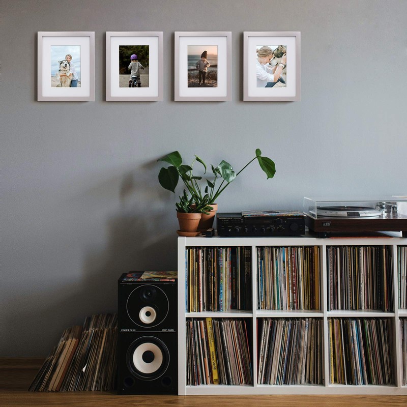 - SOLID WOOD: Kinlink 8x10 photo frames are fitting 4x6 or 5x7 with mat and standard pictures 8x10 without mat. The light grey 8x10 frames are made of high-quality light weight solid wood with transparent acrylic glass front that gives a clear view of your picture and preserves your precious memories as well. It is worth noticing that remove the protective film on the glass before use.