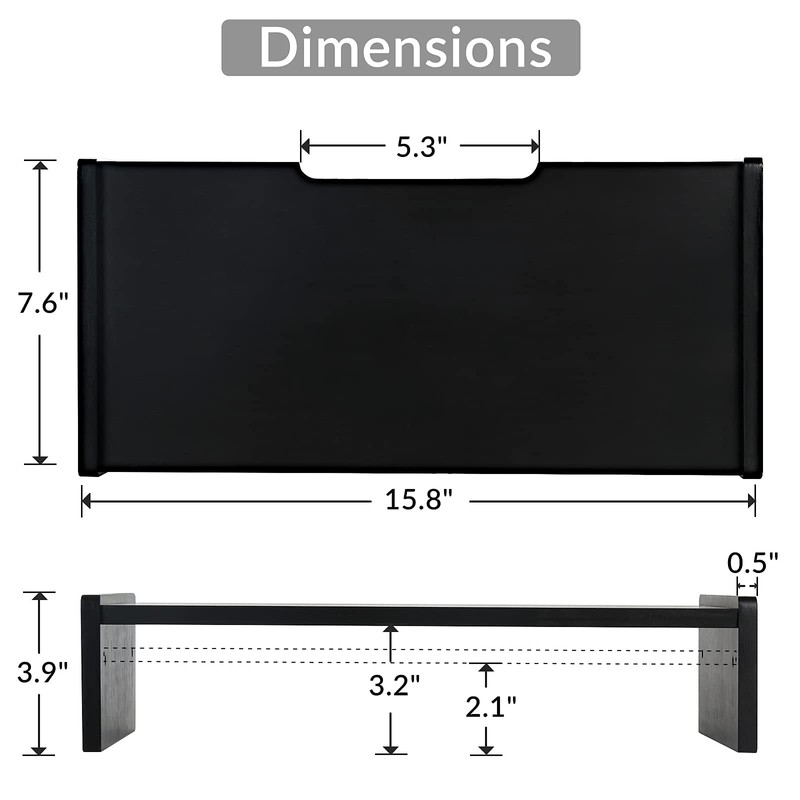 KINLINK Wood Monitor Stand Riser, Monitor Riser with 2 Adjustable Height, 15.8 inch Computer Riser for Computer, iMac, PC, Printer, Computer Monitor Stand for Home & Office, Black