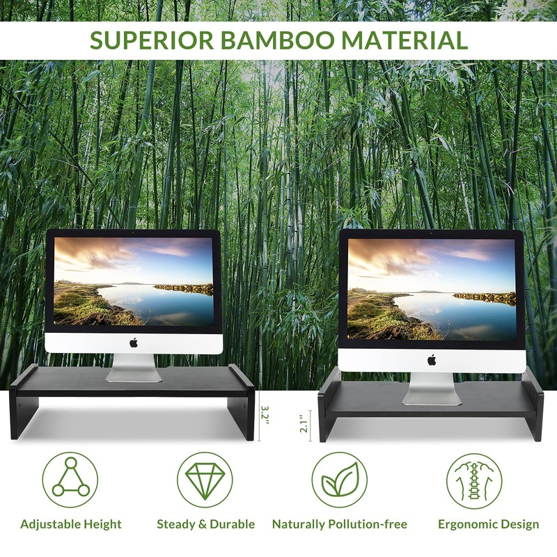- STURDY WOOD MONITOR STAND: Made of superior reliable sturdy wood materials that can sit on the desk stably without wobble. This desk monitor stand is perfect for computers, laptops, monitors and printers.