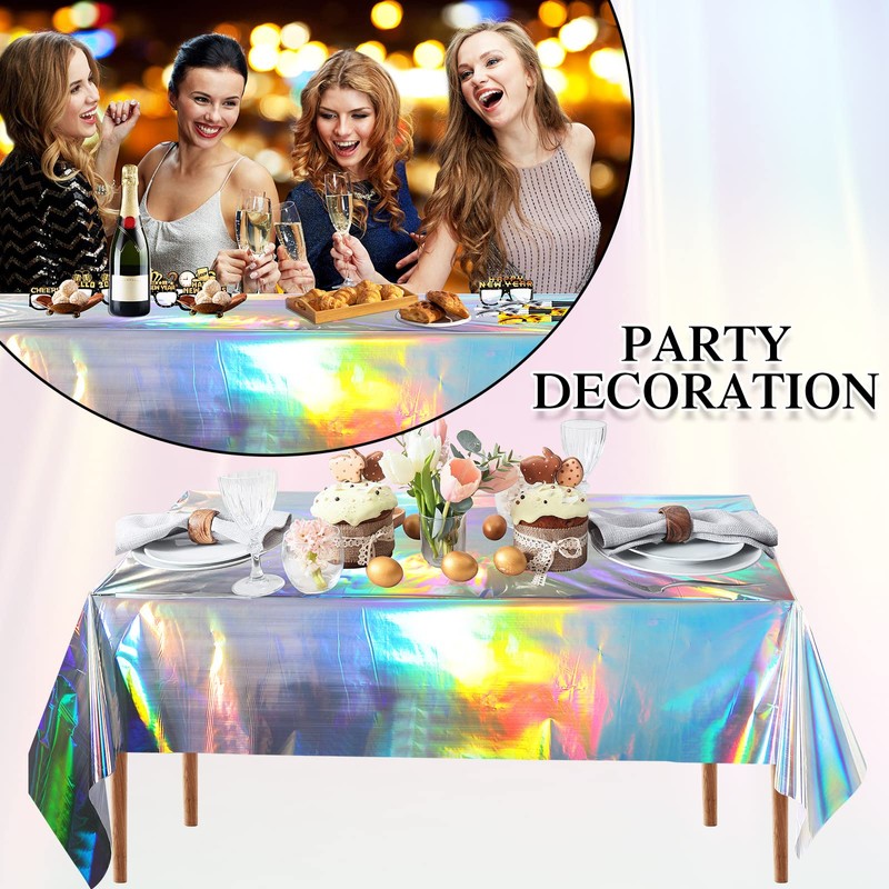 - Easy to Clean up: plastic material of this party holographic tablecloth is easier to clean up than cloth material, iridescent tablecloth will not absorb stains and dirty yourself, you can wrap the garbage to dispose of bulk garbage at the end of the party, saving time and easy to clean up