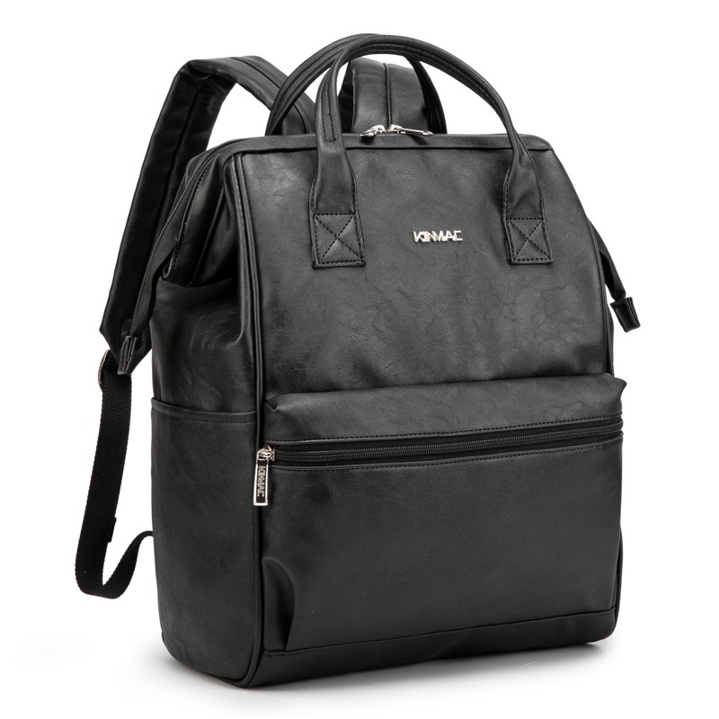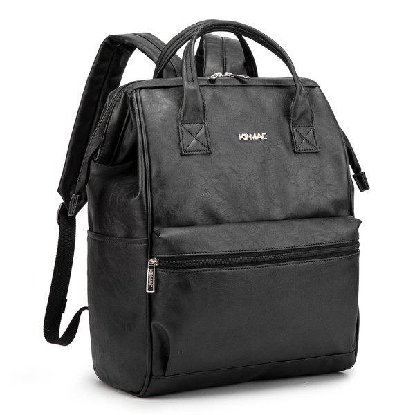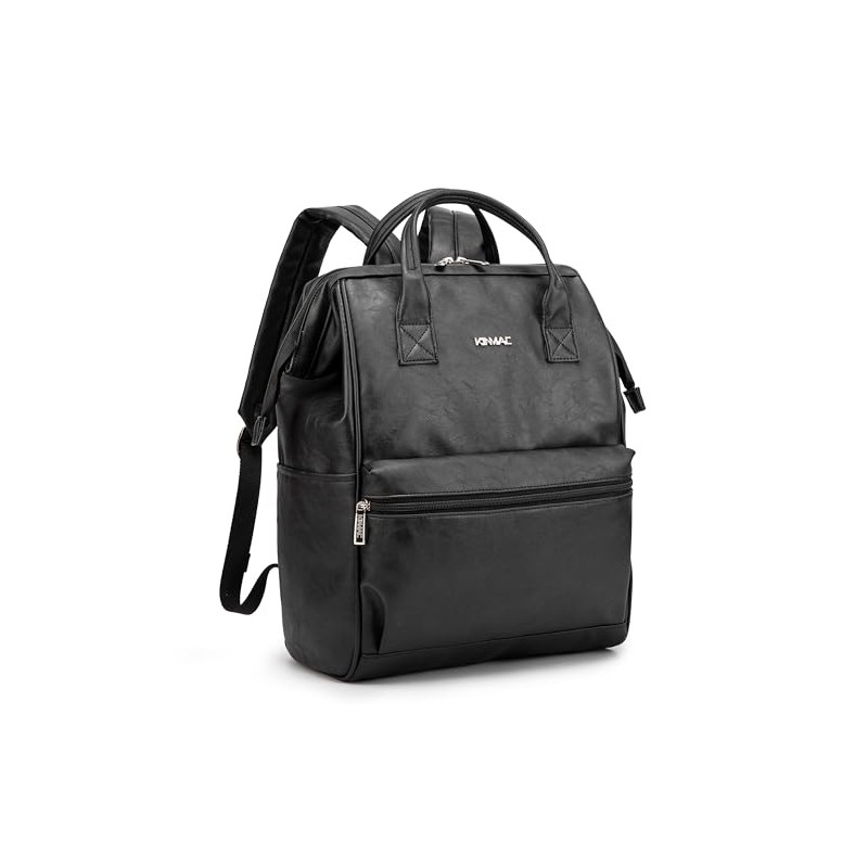 Kinmac Laptop Backpack for Women and Men, Large Capacity Travel Backpack for 15.6 inch Laptop Computer (Black PU)