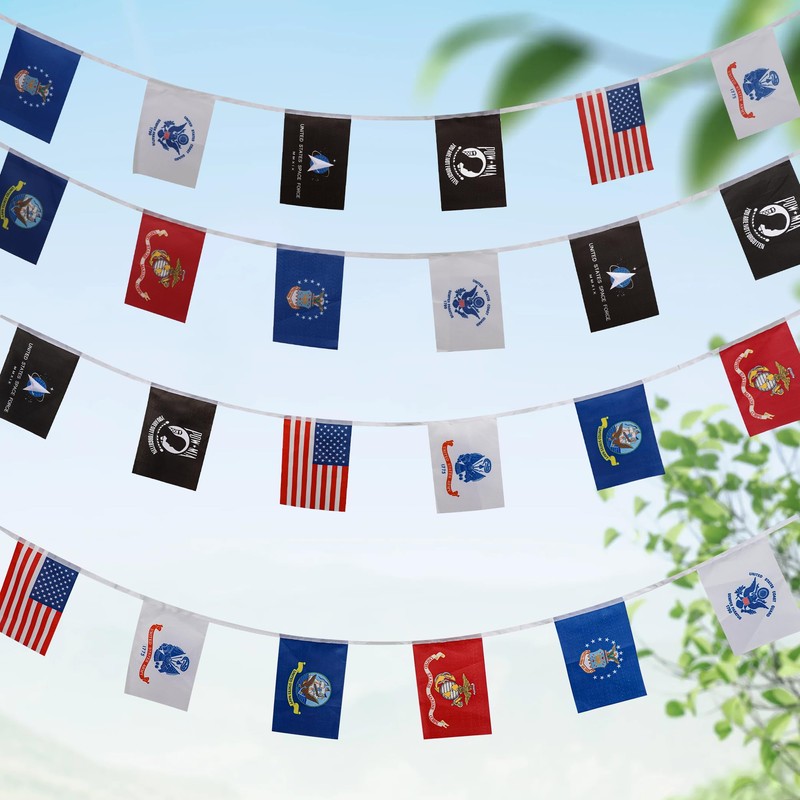 - 【PACKAGE INCLUDES】 2 x 29.5feet/24 PC Military flag banner.