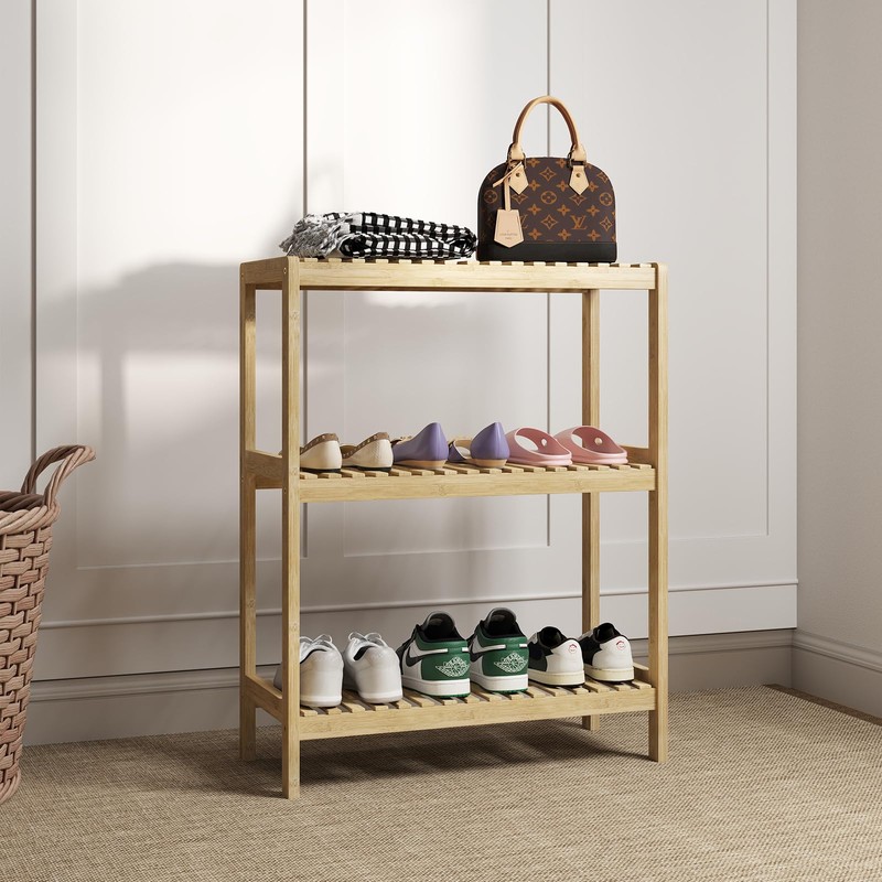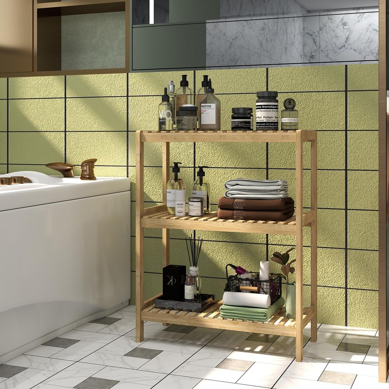- 【Large storage】With 3 levels of storage space, this bamboo shelf can meet your storage needs, make your home clean and tidy, can be used in the bathroom, kitchen, living room, office, etc.