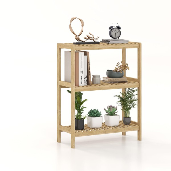 Kinquat Bamboo Shelf, 3-Tier Freestanding Storage Shelf Unit Rack, Multipurpose Small Bookshelf Bookcase Plant Stand for Bathroom, Living Room, Kitchen, Office