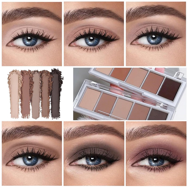 Kinretixia Neutral Nude Brown Eyeshadow Palette, 5 Matte Shades from Cream to Charcoal, Smooth, Blendable Texture, Natural Everyday to Smoky Glam Eye Makeup
