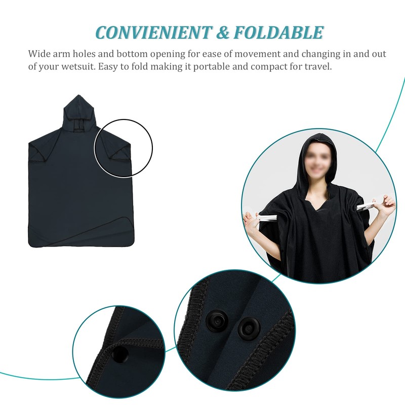 - FASHIONABLE DESIGN: Comfortable oversized hood for sun, rain, and wind protection. Hoodie helps secure poncho while keep your hands free for changing without risk of dropping clothes.