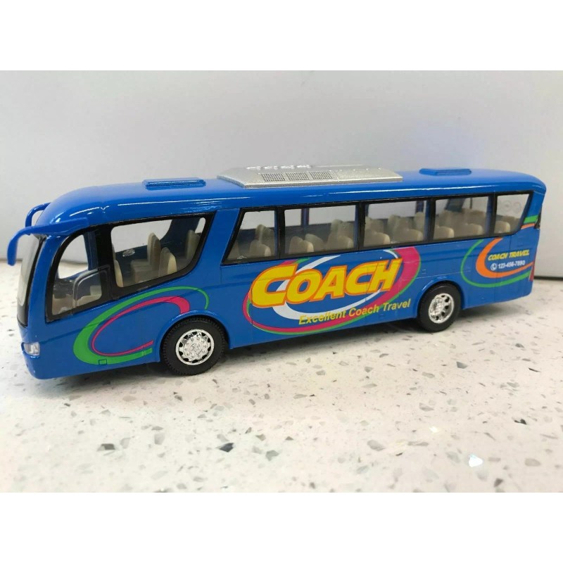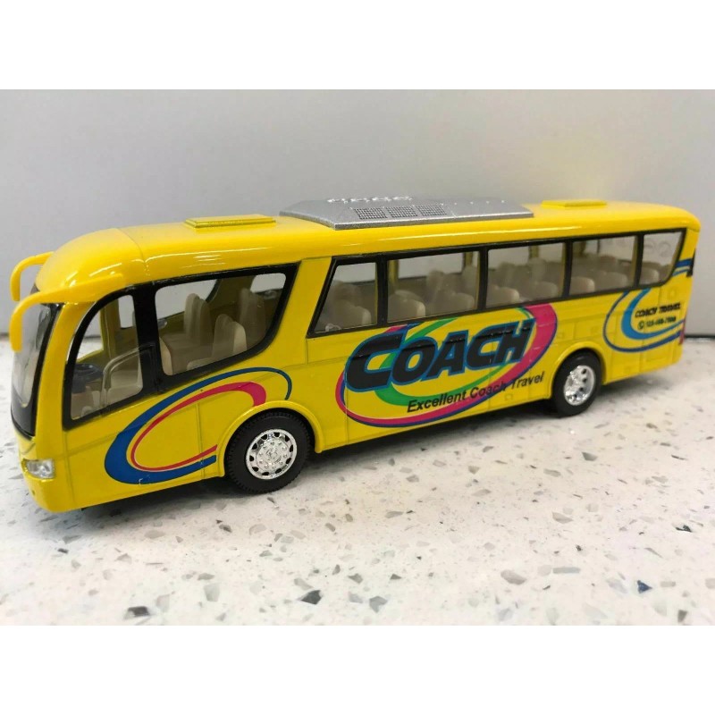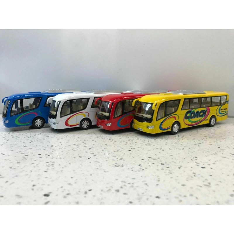 Kinsmart Travel Bus, Coach Tour Travel Bus, Kinsfun, Diecast Model Toy Car, 7'' - Mix of 4