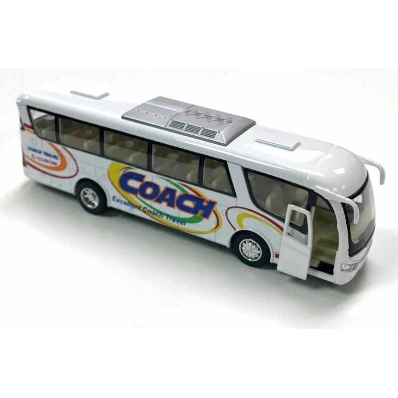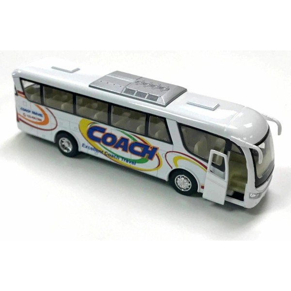 Kinsmart Travel Bus, Coach Tour Travel Bus, Kinsfun, Diecast Model Toy Car, 7'' - White