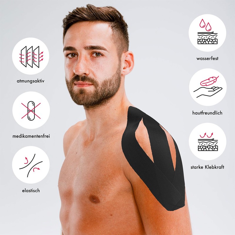 - The skin-friendly tape for kinesiology applications is particularly adaptable and unlike rigid sports tapes also highly stretchy. Thanks to the hypoallergenic adhesive, the tapes are not perceived as annoying and are comfortable to wear.