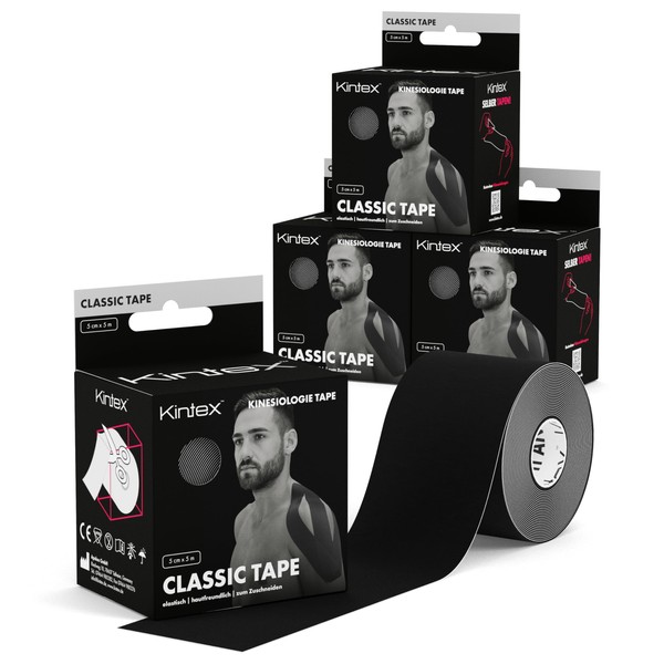 Kintex Kinesiology Tape, 4 Rolls Kintex Kinesiology Tape, Classic, 5 cm x 5 m, Physio Tape, Therapy Tape, Black, x 5 m EU