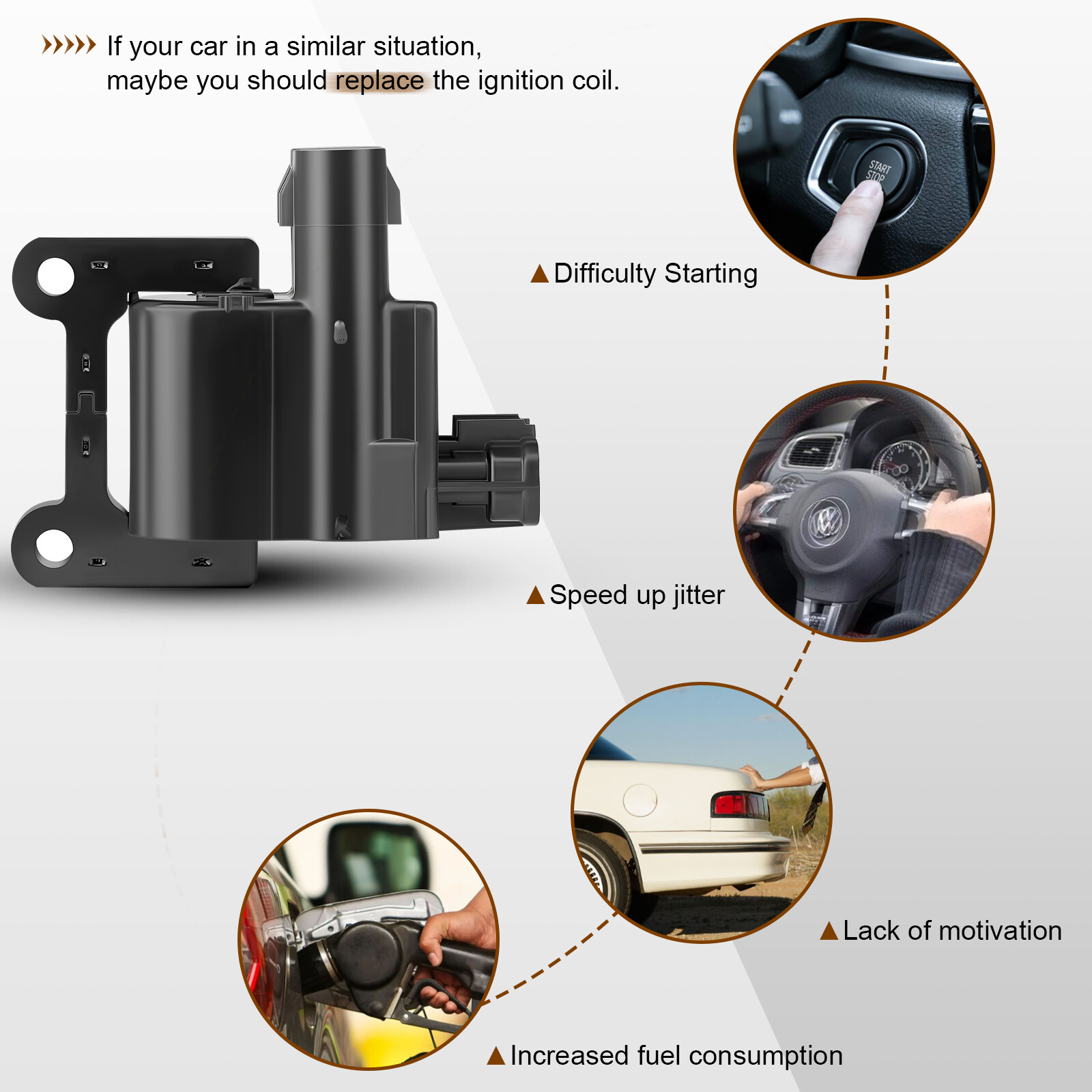 Less Miles to the Gallon If your engine is not burning fuel properly, the engine will need more fuel to do the same amount of work, leading to decreased fuel efficiency. Additionally, when your ignition coil malfunctions, it can also create disparities in the oxygen sensor, sending the engine more fuel than is actually required. Be aware that putting this unspent fuel through your engine is also incredibly bad for the associated systems, and can cause damage to the catalytic convertor, which is often a very expensive part to replace.