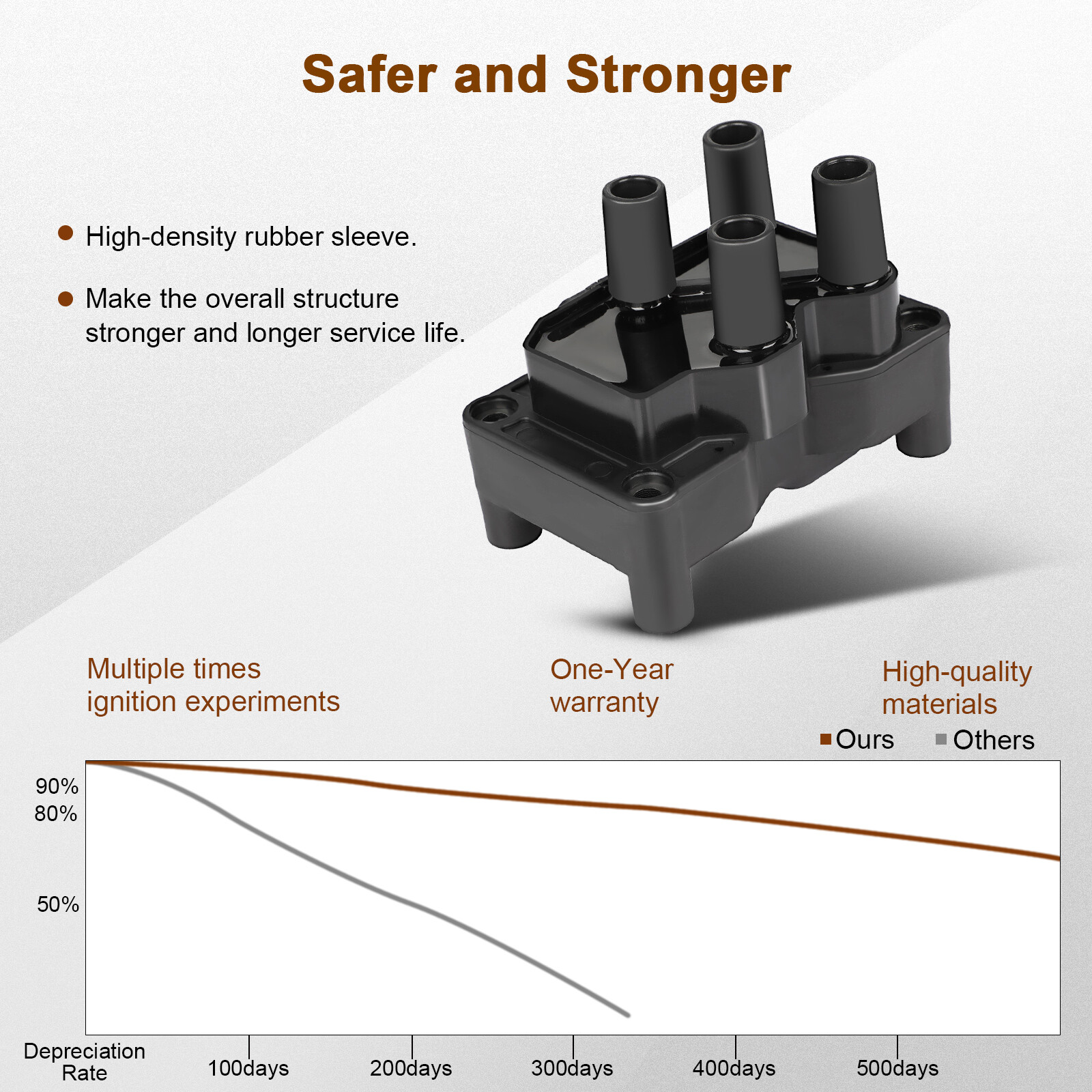 kintop_coilparts Ignition Coil Pack For 2011 2012 2013 2014 Ford Fiesta 1.6L L4 UF654