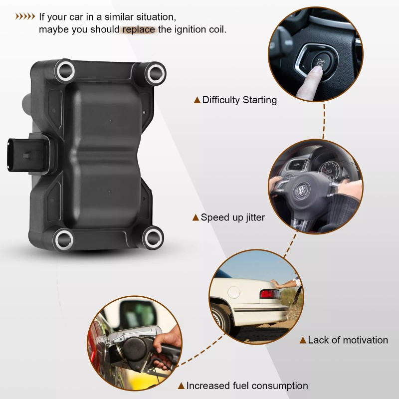 Less Miles to the Gallon If your engine is not burning fuel properly, the engine will need more fuel to do the same amount of work, leading to decreased fuel efficiency. Additionally, when your ignition coil malfunctions, it can also create disparities in the oxygen sensor, sending the engine more fuel than is actually required. Be aware that putting this unspent fuel through your engine is also incredibly bad for the associated systems, and can cause damage to the catalytic convertor, which is often a very expensive part to replace.