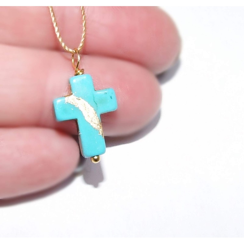 - Genuine Turquoise Howlite Petite Cross, 12x16mm