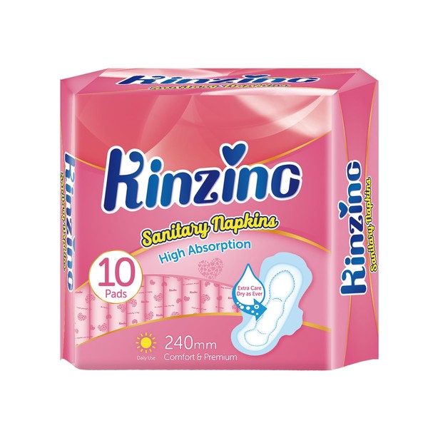 Kinzino Maxi Pads for Women Heavy Flow with Wings Pure Cotton Panty Liners 10 Count Fragrance-Free Pad