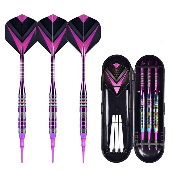 Kioiner 3 Pcs Soft Tip Darts Set, 21 Gram Professional Darts with Premium Aluminum Shafts and Extra Shaft Flights Extra Dart Tips Anti-Loose Rubber O-Rings for Electronic Dartboard