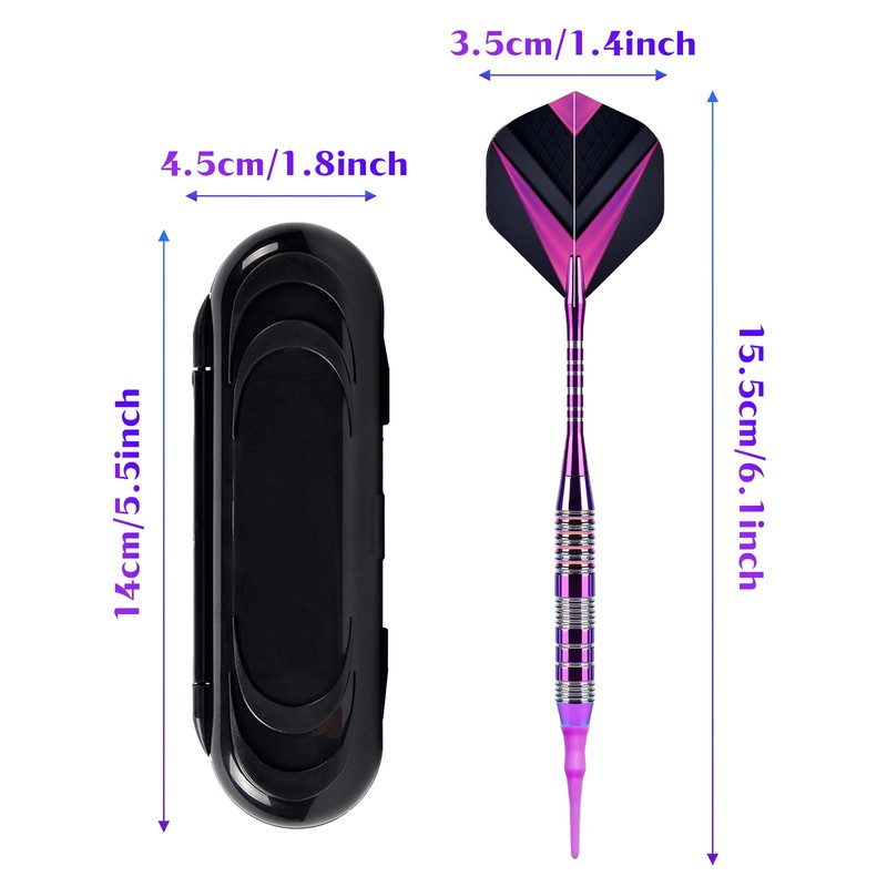- Exceptional Darts Collection: Expand your darts game with our comprehensive soft plastic tip darts set. Inside you will find three darts with 3 x aluminium shafts, plastic tips and 3 x replacement shafts, 3 x nylon tips, 8 x flight guards and 12 x rubber O-rings. In a dart case, you can easily store, disassemble and carry all these accessories.