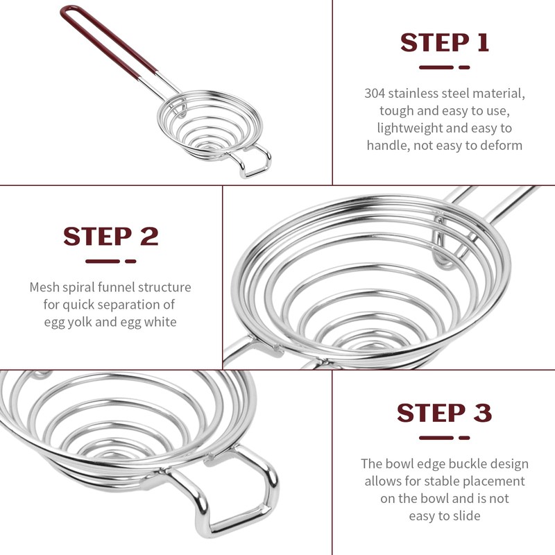 • Easy to Clean: The spiral design of our egg separator is very easy to clean, Just run it under the faucet or in the dishwasher to clean, easy to store and can be hung up when not in use.