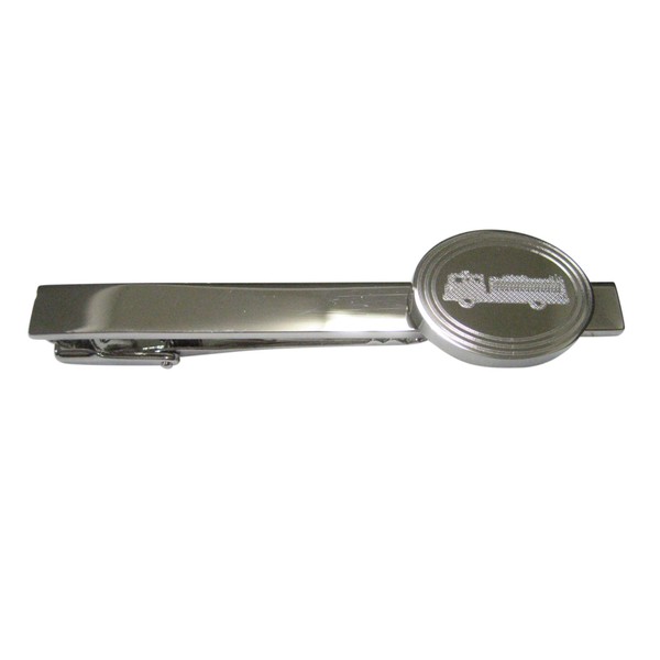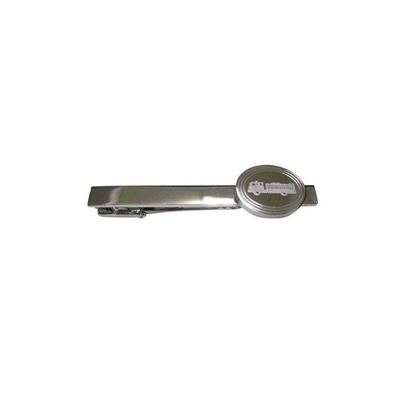 Kiola Designs Silver Toned Etched Oval Fire Truck Tie Clip