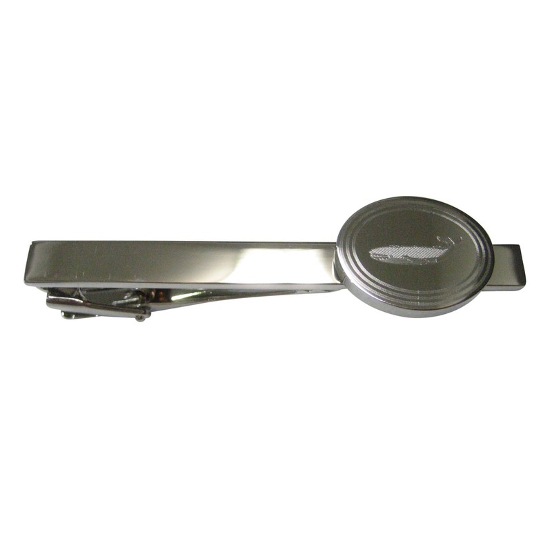 Kiola Designs Silver Toned Etched Oval Left Facing Whale Tie Clip