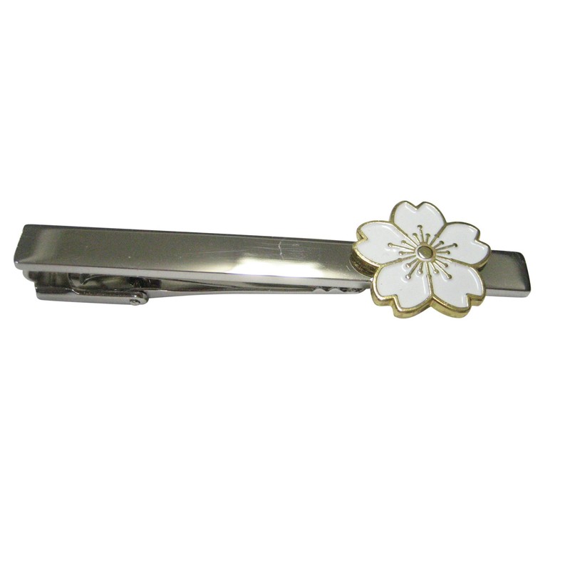 Kiola Designs White Cherry Blossom Flower Tie Clip